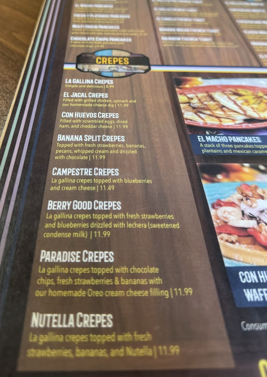 La Gallina crepes topped with fresh strawberries, bananas, and Nutella.
